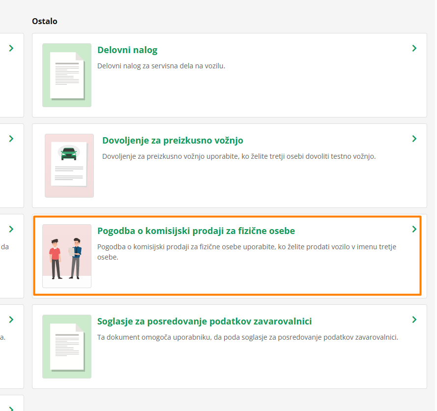 V glavnem meniju izberi modul Dokumenti, nato izberi Komisijska pogodba ob prodaji za fizične osebe.