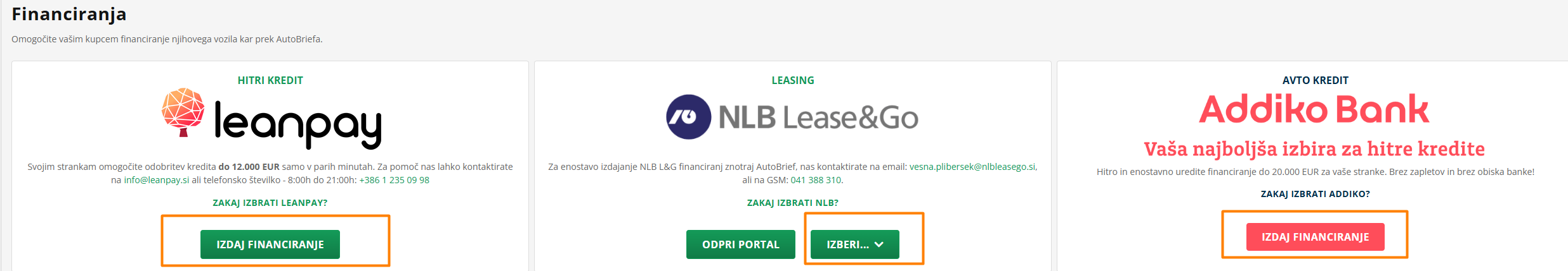 AutoBrief trenutno omogoča financiranje preko naslednjih partnerjev: