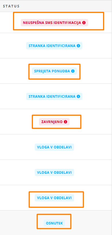 - status, ki kaže, v kateri fazi je oddana ponudba financiranja