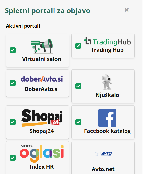 Med ponudniki izberi portal ali več portalov, na katere želiš oglaševati to vozilo.
