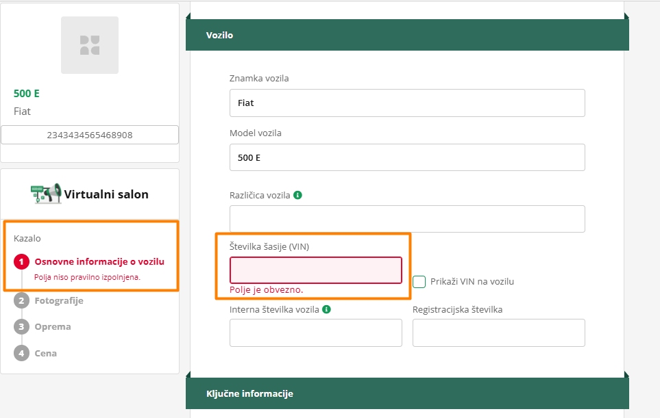 - Prav tako preveri, ali imaš aktivno integracijo s platformo, kjer želiš objaviti vozilo (npr. DoberAvto).
