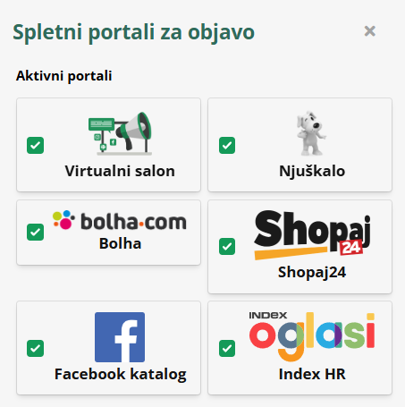 - Izbereš lahko vse portale, ki jih imaš na voljo.