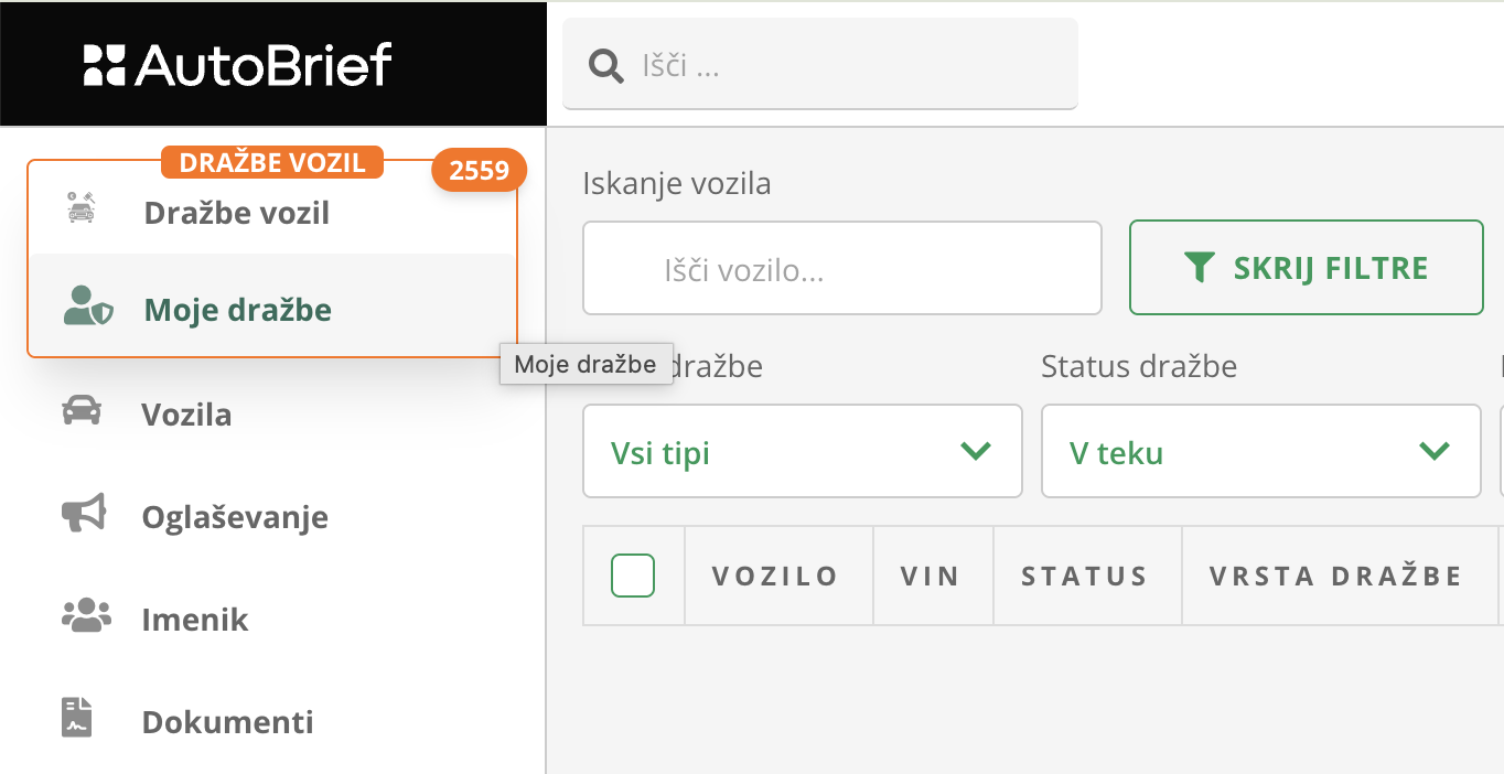 Vsa vozila, ki jih prodajaš preko dražb, so zbrana pod zavihkom Moje dražbe.