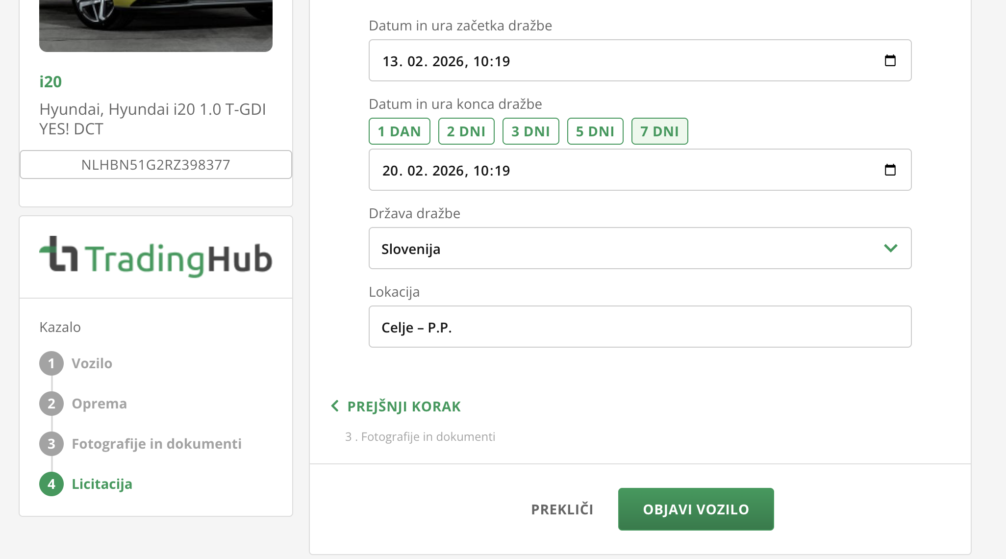 Ko si zadovoljen, objaviš vozilo na dražbo s klikom na OBJAVI VOZILO.