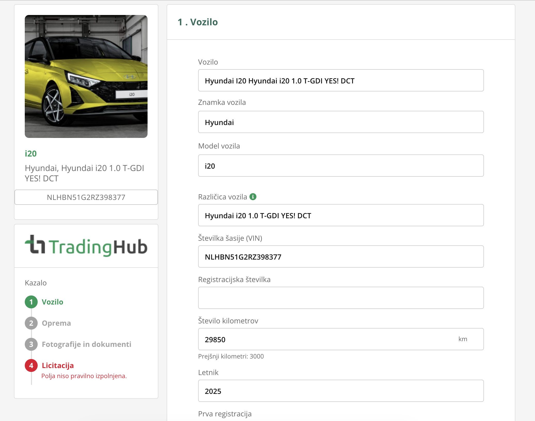 Nasvet: Nastavljena cena vozila naj ne presega običajne prodajne cene na B2C trgu. Če je cena previsoka, drugim trgovcem nakup ne bo zanimiv, saj jim ne bo omogočal zadostne marže.