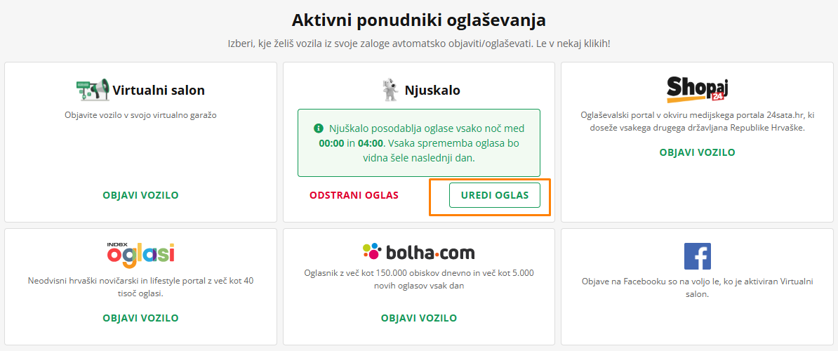 - S klikom nanj se ti bodo prikazala vsi ponudniki, kamor si oglas objavil in kamor ga še nisi.