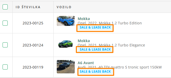 S klikom na to izbiro bo vozilo označeno s Sale & Lease back značko.