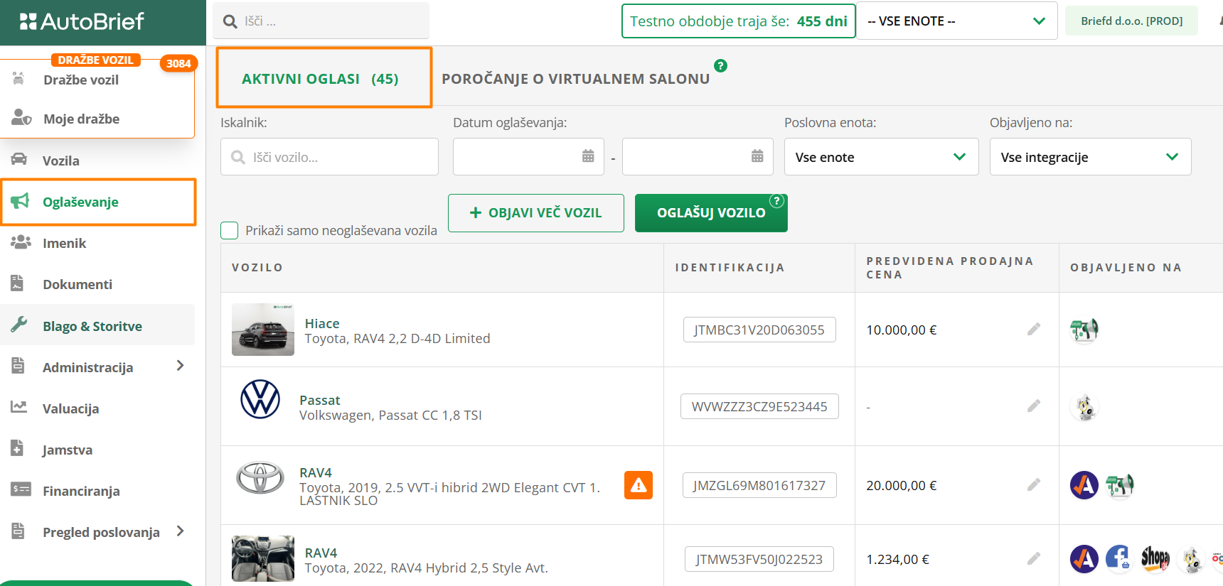 Da bi imel čim boljši pregled na oglaševanimi vozili, imaš na voljo pregled svojih oglasov v zavihku Oglaševanje. Na ta način na AutoBrief skrbimo, da ne izgubljaš časa, ko želiš izbrisati, posodobiti ali objaviti novo vozilo.