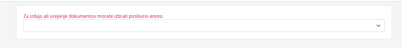 Ob kliku na USTVARI RAČUN se ti odpre meni, v katerem moraš izbrati poslovno enoto.