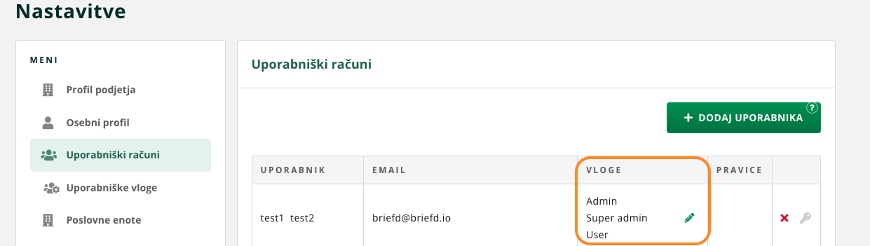 Nova vloga bo dostopna znotraj "Uporabniški računi", kjer jo boš lahko dodelil vsakemu uporabiku pod stolpcem VLOGE.