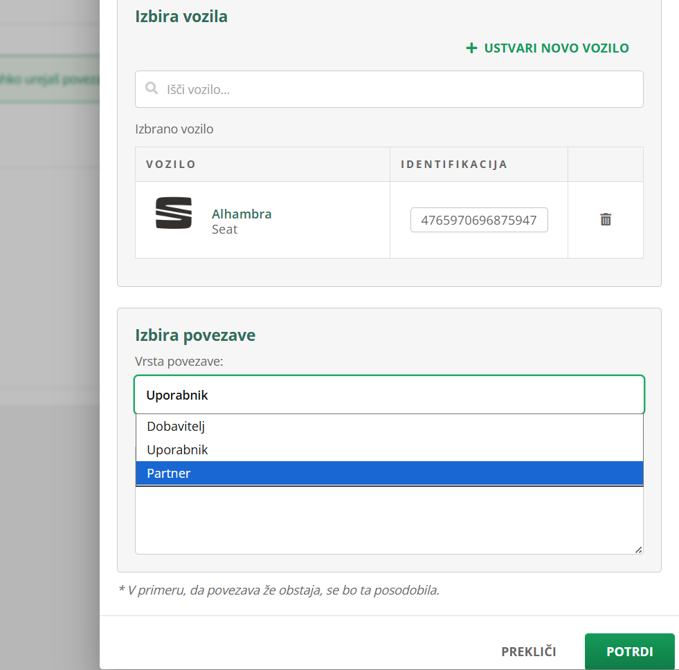 Na koncu izberi še vrsto povezave: uporabnik, dobavitelj ali partner. In nato klikni POTRDI.