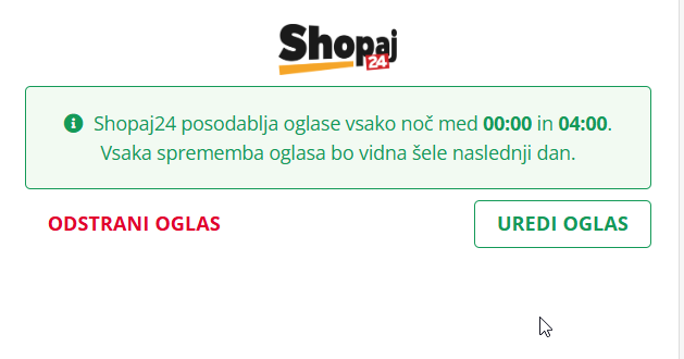 Pomembno: Večina oglasnih mest in portalov posodablja oglase vsako noč med 00:00 in 04:00. Vsaka sprememba oglasa bo zato vidna šele naslednji dan.